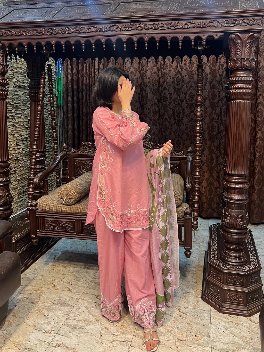 Blush 3 Piece Printed Dress is a soft and elegant ensemble crafted in breathable cotton, designed for effortless everyday grace. The soothing blush-pink long shirt features delicate printed detailing that adds a subtle charm, paired with a matching straight trouser for a clean and graceful silhouette. Completing the look is a beautifully printed dupatta that enhances the outfit with a light, feminine flow. Perfect for day wear, casual gatherings, and seasonal styling, this ensemble blends comfort with timeless elegance.