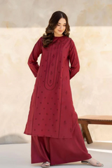 Unveil timeless elegance with Kaashni, a beautifully crafted 2-piece outfit in a stunning maroon hue. Made from premium Premium Stone Linen , it offers unmatched comfort and breathability, perfect for all-day wear. The intricate embroidery on the shirt adds a touch of sophistication, making it a versatile choice for semi-formal and casual occasions alike.