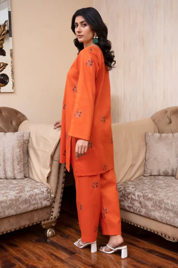 Step into effortless style with our Orange Bloom 2-Piece Set. Tailored from premium linen, this outfit ensures comfort with a graceful fall. The straight kurta, detailed with delicate floral motifs, pairs seamlessly with matching trousers for a chic yet minimal look. Perfect for everyday wear and casual gatherings, Orange Bloom brings a fresh burst of elegance to your wardrobe..